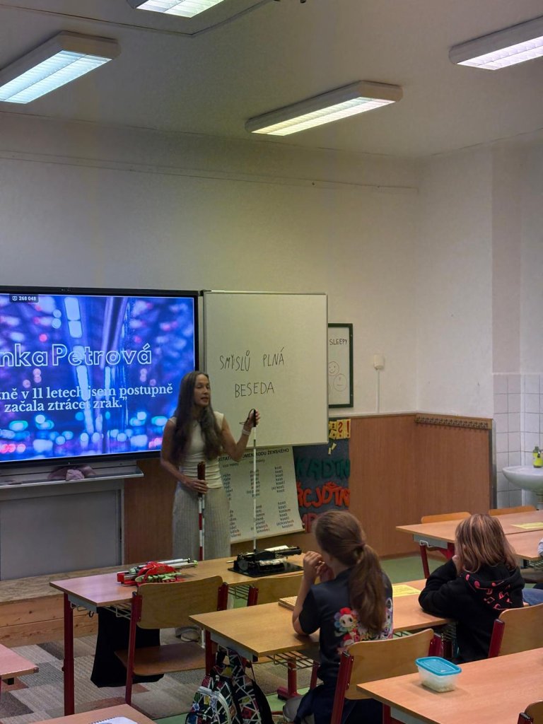 Ve čtvrtek 25. září proběhla na naší škole "Smysluplná beseda" o životě s těžkým zrakovým postižením.